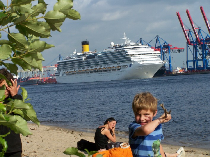 Auslauf Costa Pacifica am Elbstrand vor Övelgönne